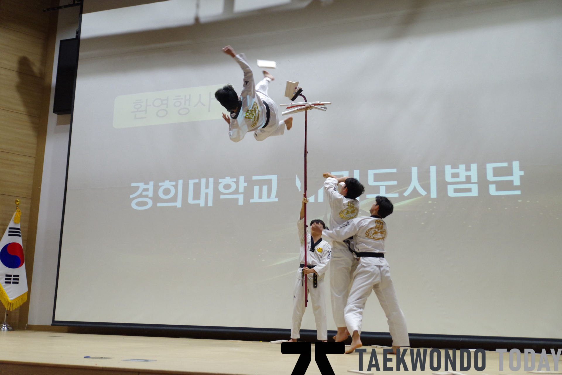 1983년 국내 대학 최초로 설립된 경희대 태권도학과는 태권도 시범 분야에서 독보적 명성을 쌓아왔다. 특히 시범단은 매년 창작 공연을 자체 제작하며 태권도 공연 예술의 새 지평을 열고 있다는 평가를 받는다.