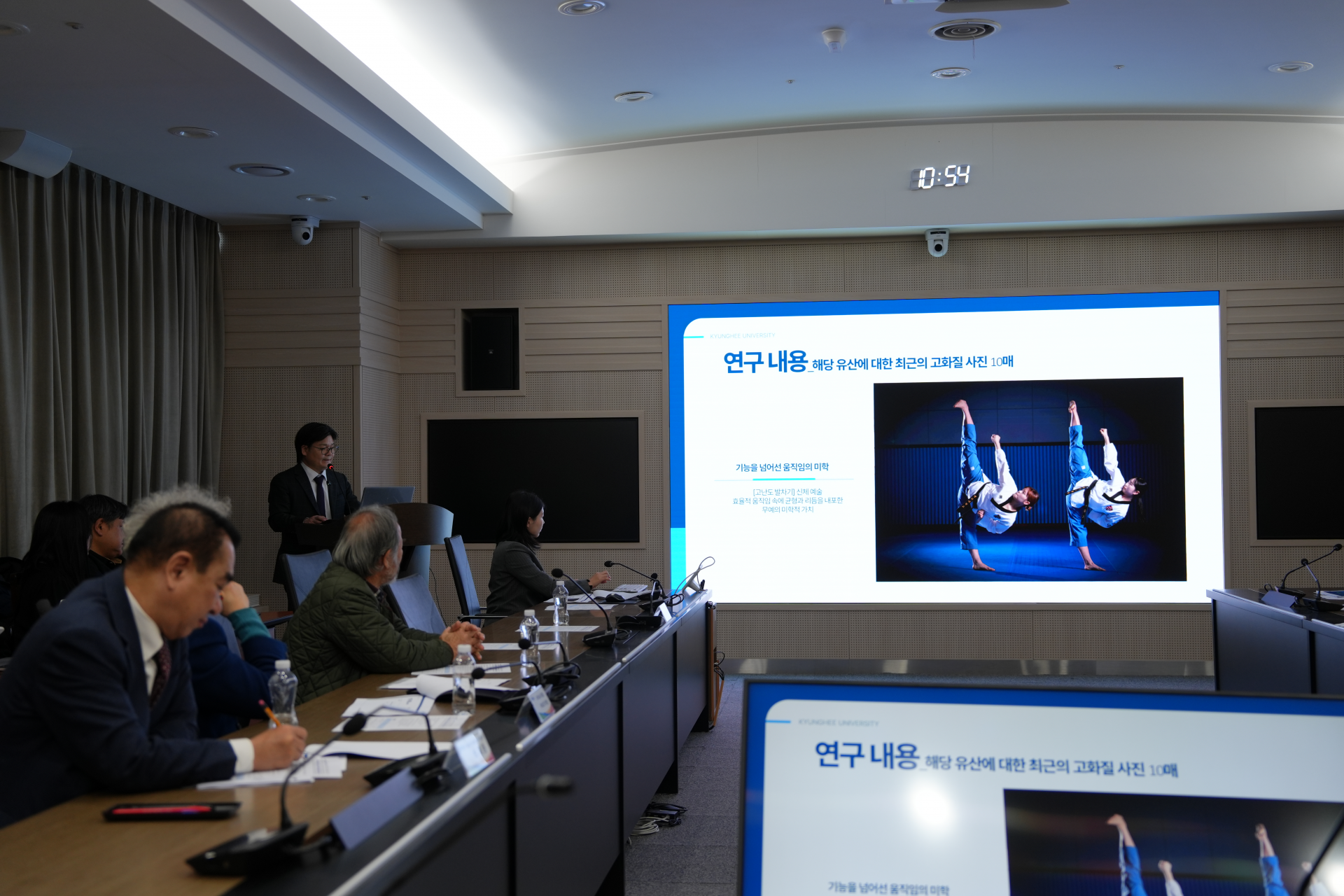 경희대학교 산학협력단의 태권도학과 조성균 교수가 태권도 유네스코 인류무형유산 등재 신청서 작성 용역 성과 발표 모습 사진 : 태권도투데이 유몽뢰 사진기자