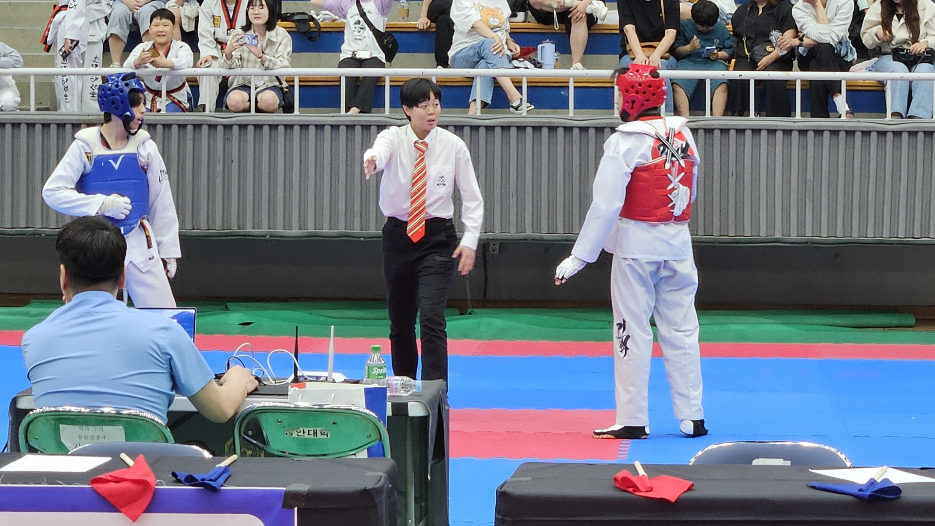 本次赛事中,被正式任命为裁判的,是来自中国的刘梦蕾(LIUMENGLEI)女士。她毕业于庆熙大学(KyungHee University)跆拳道硕士课程,并完成博士阶段学习。凭借出色的韩语能力和对韩国文化的理解,以及过硬的理论与实战水平,她获得了高度认可。此次,她以竞技项目常任裁判身份参与赛事,凭借准确、公正的判罚赢得现场一致好评。
